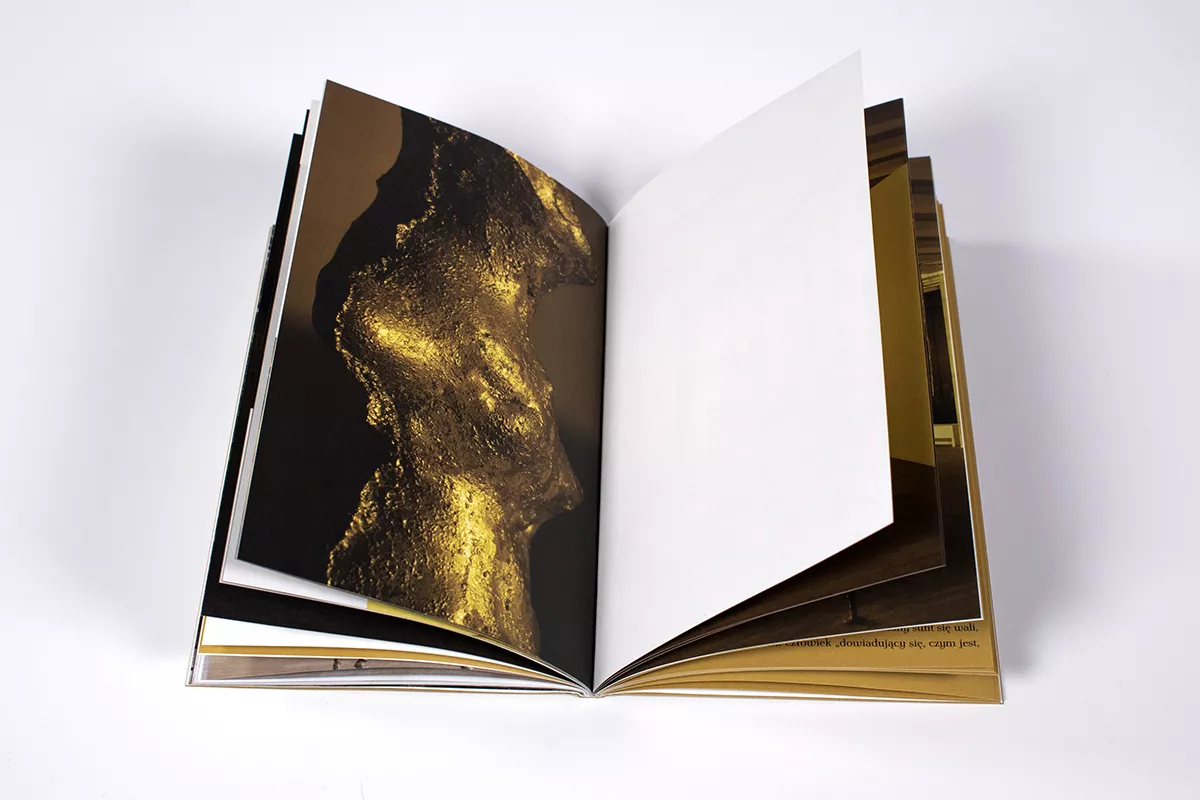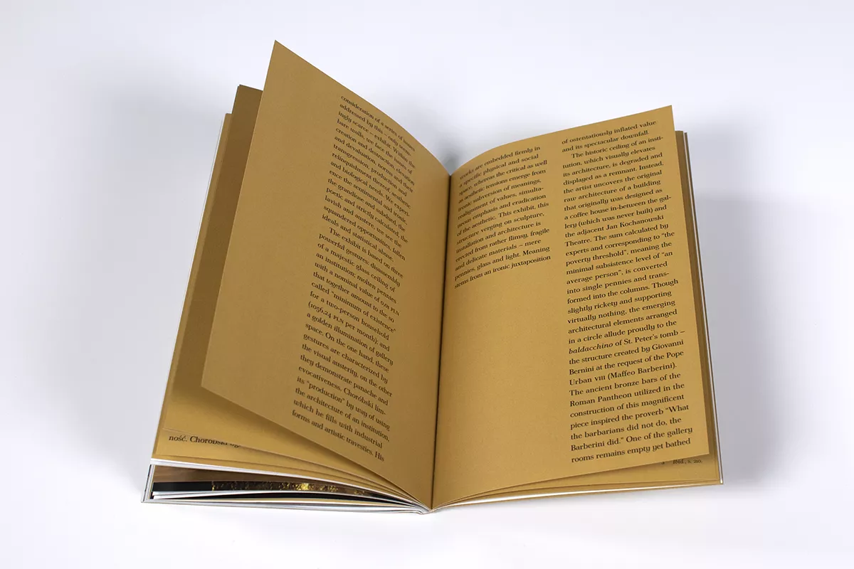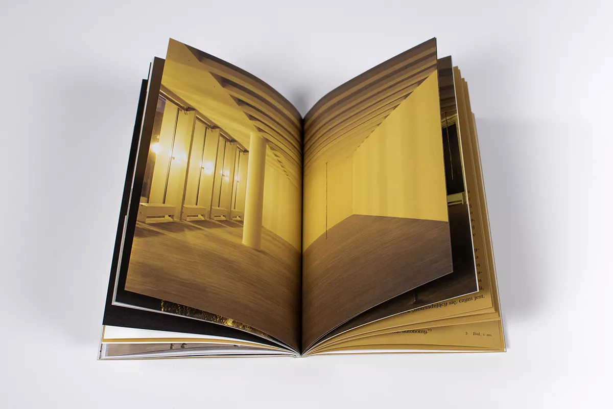 Katalog zawiera obszerną dokumentację fotograficzną wystawy oraz tekst opisujący projekt.