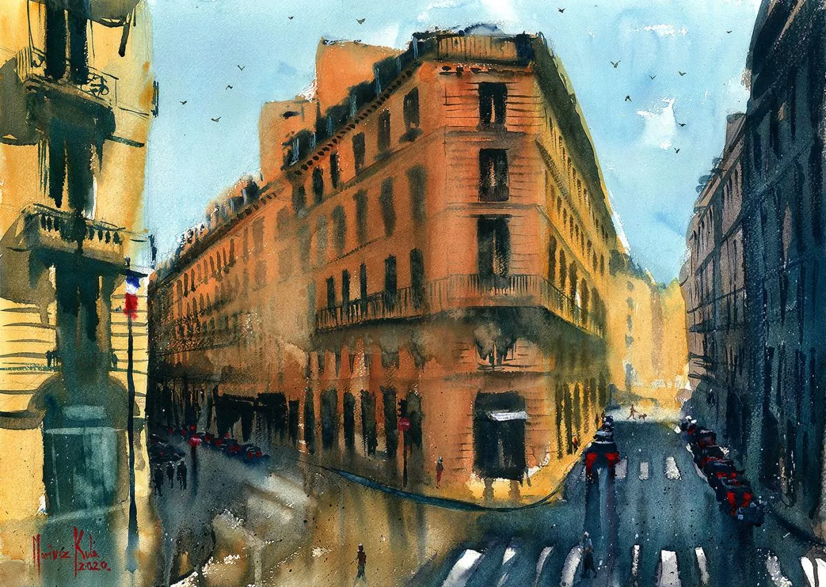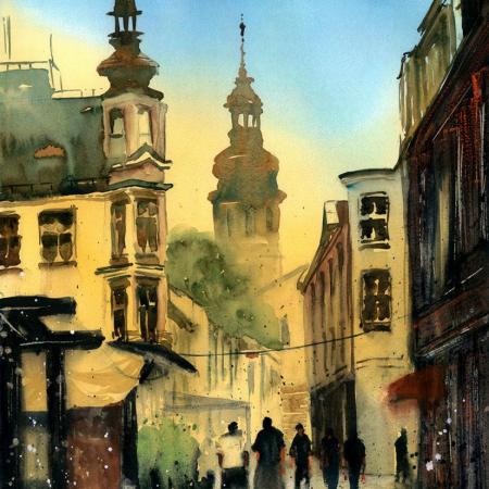 Głównie zajmuję się akwarelą starając się w jak największym stopniu zrozumieć tą niełatwą technikę. Eksperymentuje z różnymi stylami i tematami w akwareli tak by jak najbardziej rozwinąć się. Wymaga to ode mnie sporej otwartości i elastyczności co nie zawsze jest proste :) Najbardziej "czuję się" w kategorii Cityscape czyli miejskim pejzażu. Uwielbiam miejskie, zaklęte rewiry, monumentalne budynki, przechodniów zajętych swoimi sprawami, zróżnicowane warunki atmosferyczne potrafiące to samo miejsce po wielokroć przedstawiać w odmienny sposób.