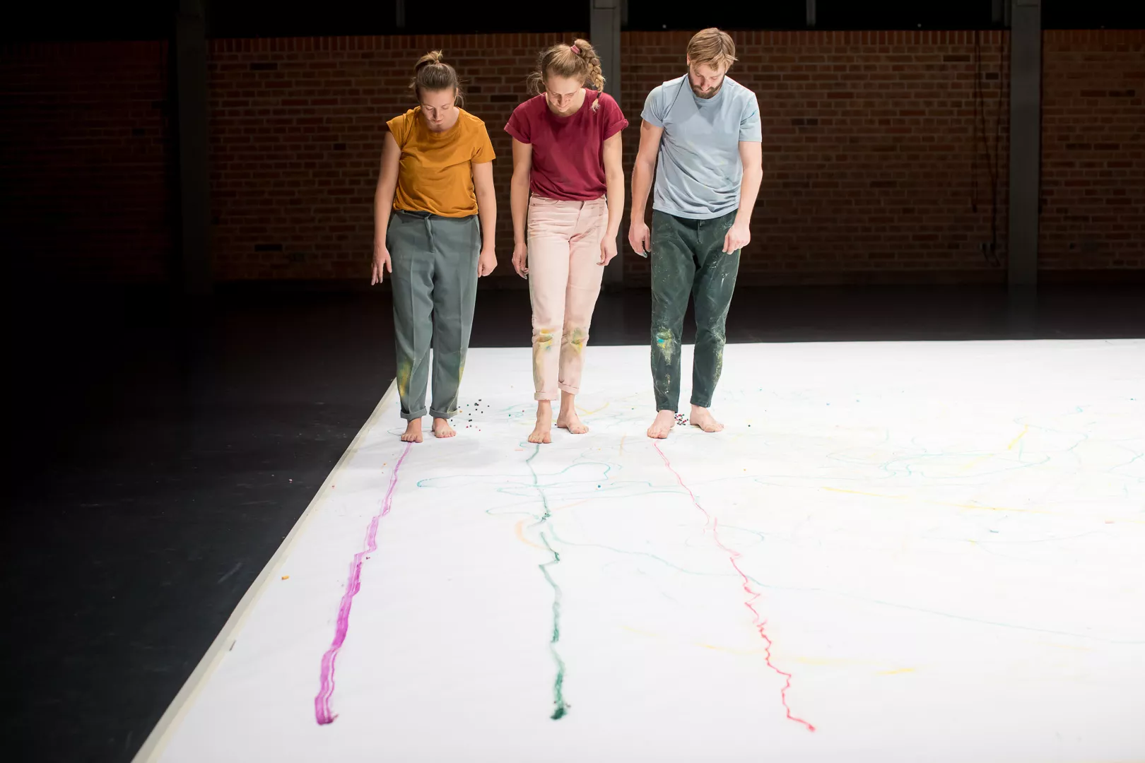 _on_line__ jest spektaklem zgłębiającym temat śladu ruchu, który uczestnicy wraz z performerami tworzą poprzez własny taniec. Powstałe wielkoformatowe prace będą ulegały transformacji na oczach i z aktywnym udziałem widzów. Tak skonstruowane wydarzenie może stać się twórczą okazją do zacieśniania więzi między dziećmi i opiekunami oraz do niecodziennego spotkania ze sztuką.